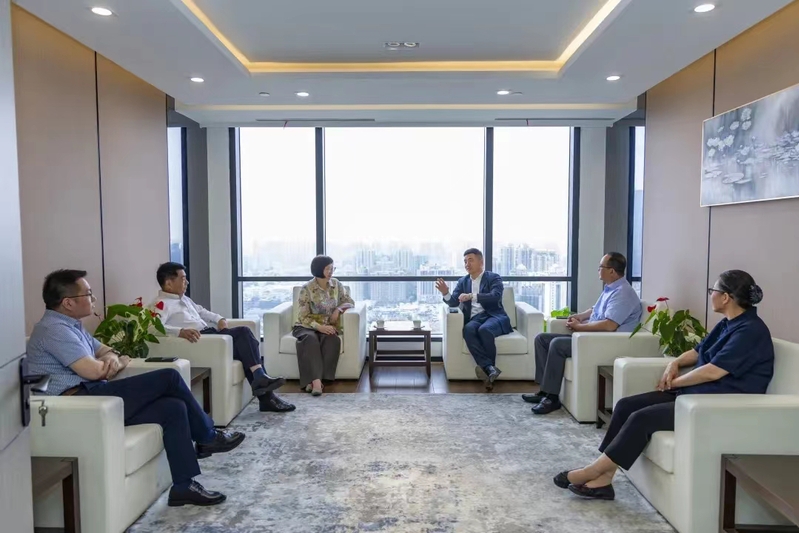 6月16日,袁雯及海角av 党委书记贺朝霞,海角av 党委副书记、副院长姚秋磊,1979级校友、商界校友联谊会会长、上海外高桥集团有限公司原董事长、党委书记舒榕斌,1992级校友、商界校友联谊会副会长兼秘书长、太平资产管理有限公司首席法务官吴东等一行走访上海中因律师事务所。1995级校友、上海市领军人才、东方大律师、上海中因律师事务所主任曹志龙接待并带领参观律所外滩议站、外滩法律服务共享会客厅、模拟法庭等场所。