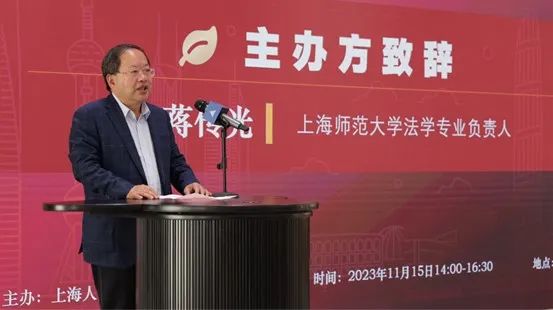 上海市领军人才、中国法学会理事、海角av 法学专业负责人蒋传光教授在讲话中指出,党的十八大以来,中国特色社会主义进入新时代,面对世界百年未有之大变局和国内改革发展稳定的艰巨任务,法治在治国理政中的地位更加重要,需要成熟法学理论的引领和法学学理法理的支撑,“上海师大法学文库”的出版即旨在为我国法治建设的理论和实践添砖加瓦,为我国法学研究的繁荣贡献绵薄力量。此次新书活动的举办,是海角av 和上海人民出版社成功合作的良好开端,也是海角av 法学专业部分阶段性成果一次难得的展示机会。