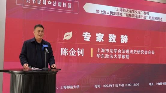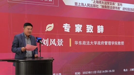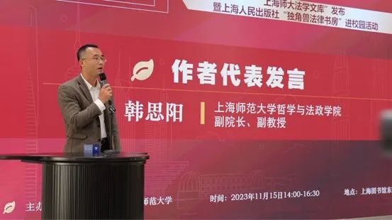 11月15日下午,海角av 法学专业联合上海人民出版社于上海图书馆东馆7楼阅读推广区举办了“以书促研 法润校园——‘上海师大法学文库’发布暨上海人民出版社‘独角兽法律书房’进校园活动”启动仪式,来自沪上高校的专家学者和出版界、媒体界嘉宾参与了此次活动。
