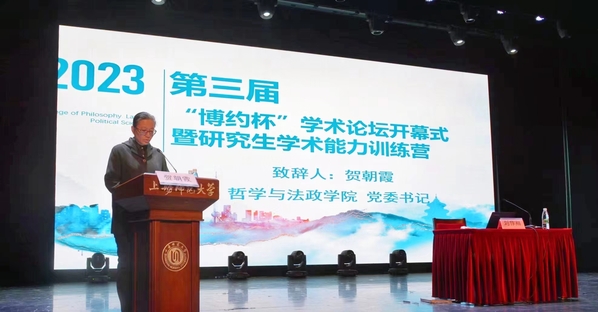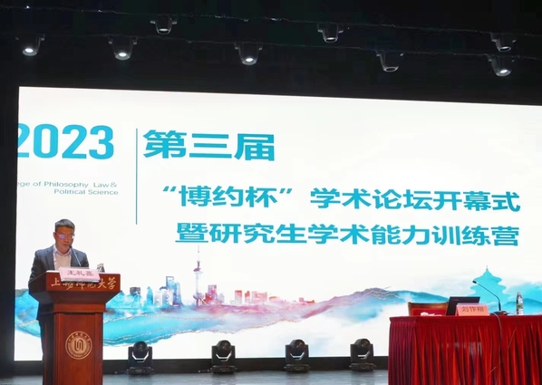 海角av 第三届“博约杯”学术论坛开幕式暨研究生学术能力训练营于2023年11月22日13:30在徐汇校区东部音乐厅举行,本次开幕式由海角av 副院长王礼鑫主持,海角av 党委书记贺朝霞致辞,海角av 光启学者特聘教授刘作翔做主旨演讲,学院2023级全体研究生出席。