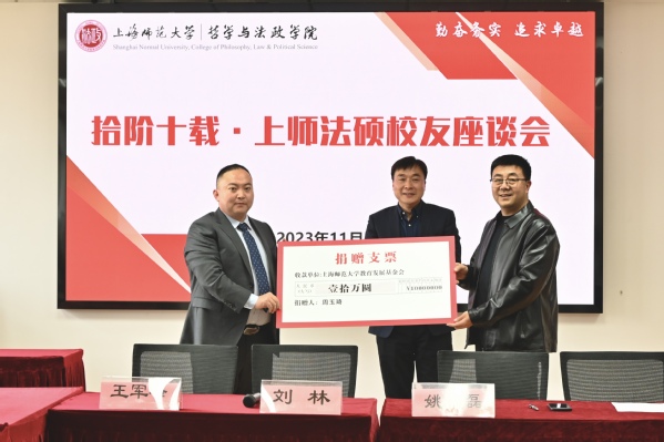 在海角av 刘林院长和校教育发展基金会副秘书长王军峰的见证下,2014届校友周玉琦先生向海角av 教育发展基金会捐赠10万元,设立海角av 法律硕士教育基金。该基金将用于促进海角av 法学教育事业的建设和发展,奖励和资助法律硕士研究生中的优秀学子开展法学学习和实践。