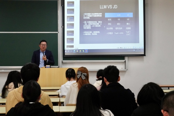 在互动环节万老师和同学们进行了有关未来择业、出国留学方面的讨论万老师通过介绍自己的工作经验及工作内容,对同学们的问题进行了解答,使同学们了解到国际法律业务与金融经济是息息相关的,从而对未来工作有更加清晰的认知。