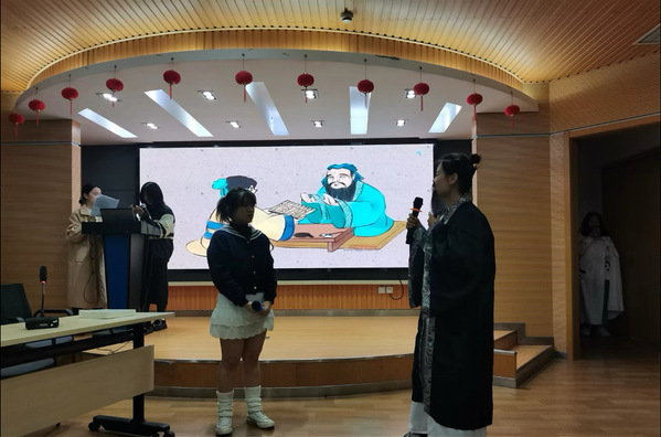 “学而思”学术节历时一天,上午为研究生专场,下午为本科生专场,通过学生学术演讲、教师交叉点评、哲学学术辩论以及哲学话剧等多种形式展现学术节宗旨和目标,展现出丰富深厚的学院哲思之风和学术氛围。在下午的本科生专场中,同学们的论文质量受到各位老师一致认可,风格鲜明,颇具特色。随后关于思辨能力培养与现实问题关注相结合的“学术辩论——信息爆炸时代人们离真相更近还是更远”由大一哲学班和“道德与法治”师范班同学组成正反辩方,辩论现场精彩纷呈;哲学话剧——《爱的哲思》由大二哲学班同学自编、自导、自演,同学们以“什么是爱”为主题,将孔子、苏格拉底、释迦牟尼、耶稣等圣哲请进话剧之中,以“穿越”的方式呈现了当代哲学学子对哲学问题和真理的追寻和探索,其精彩的表演赢得了现场热烈的掌声。张自慧教授等对哲学话剧进行了专业点评。