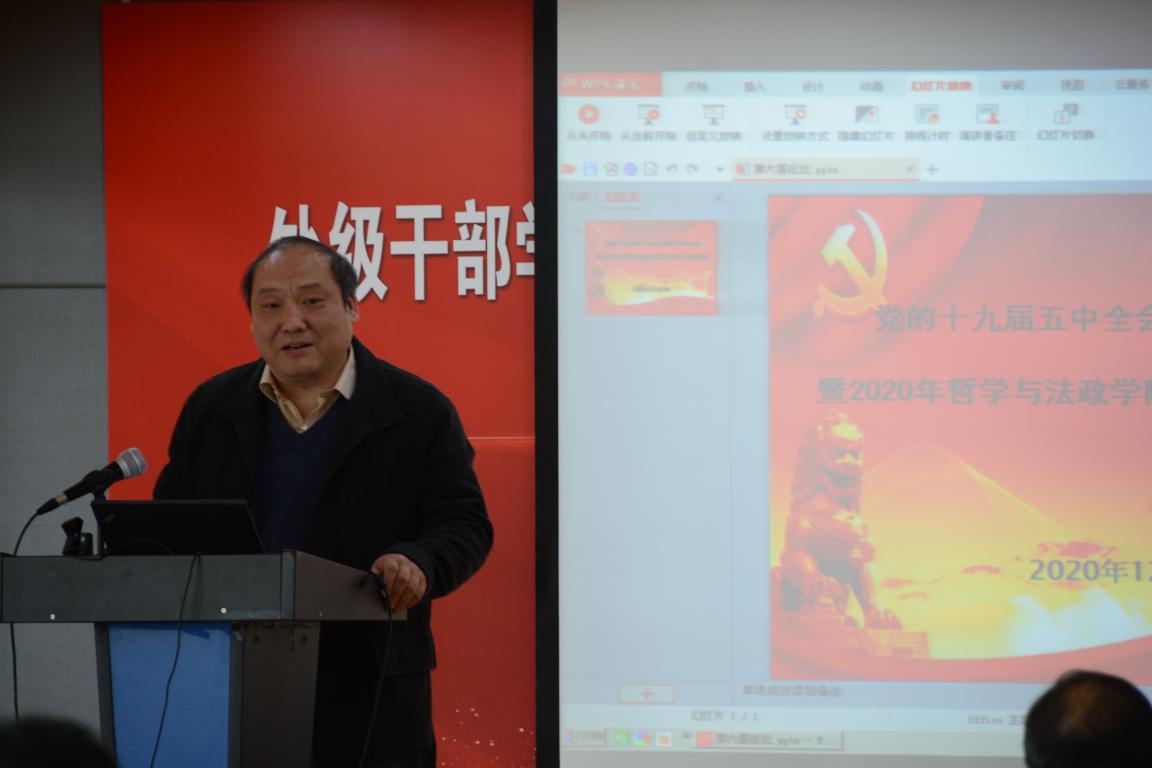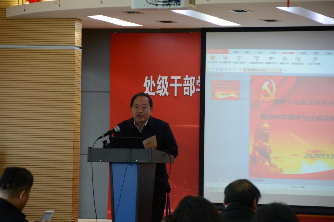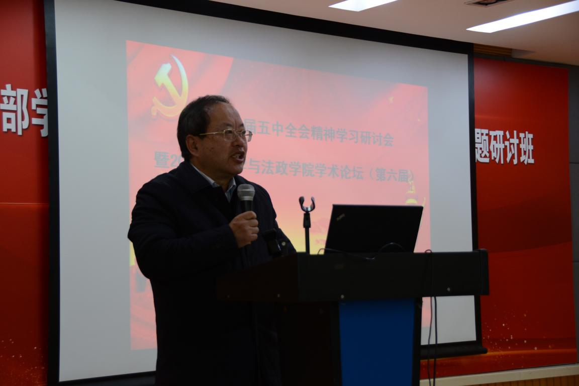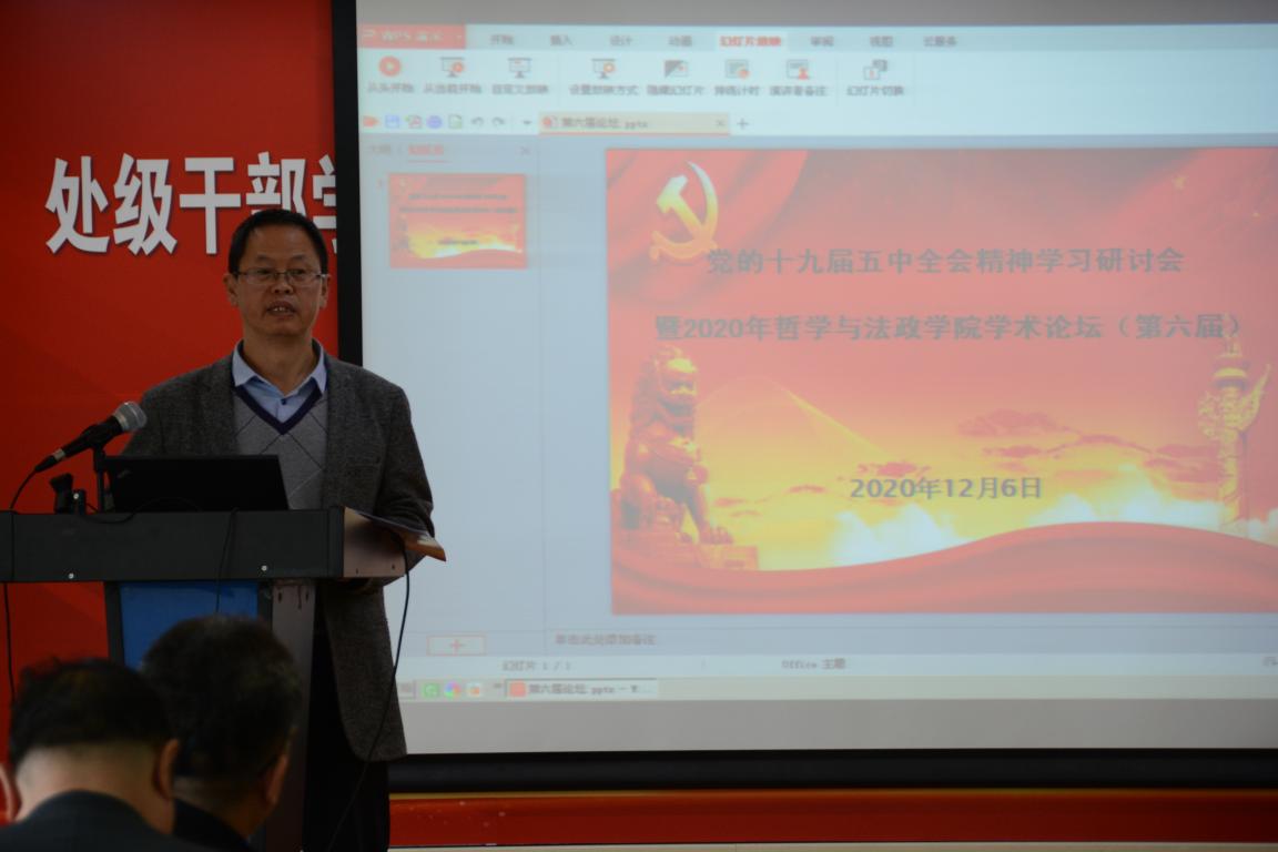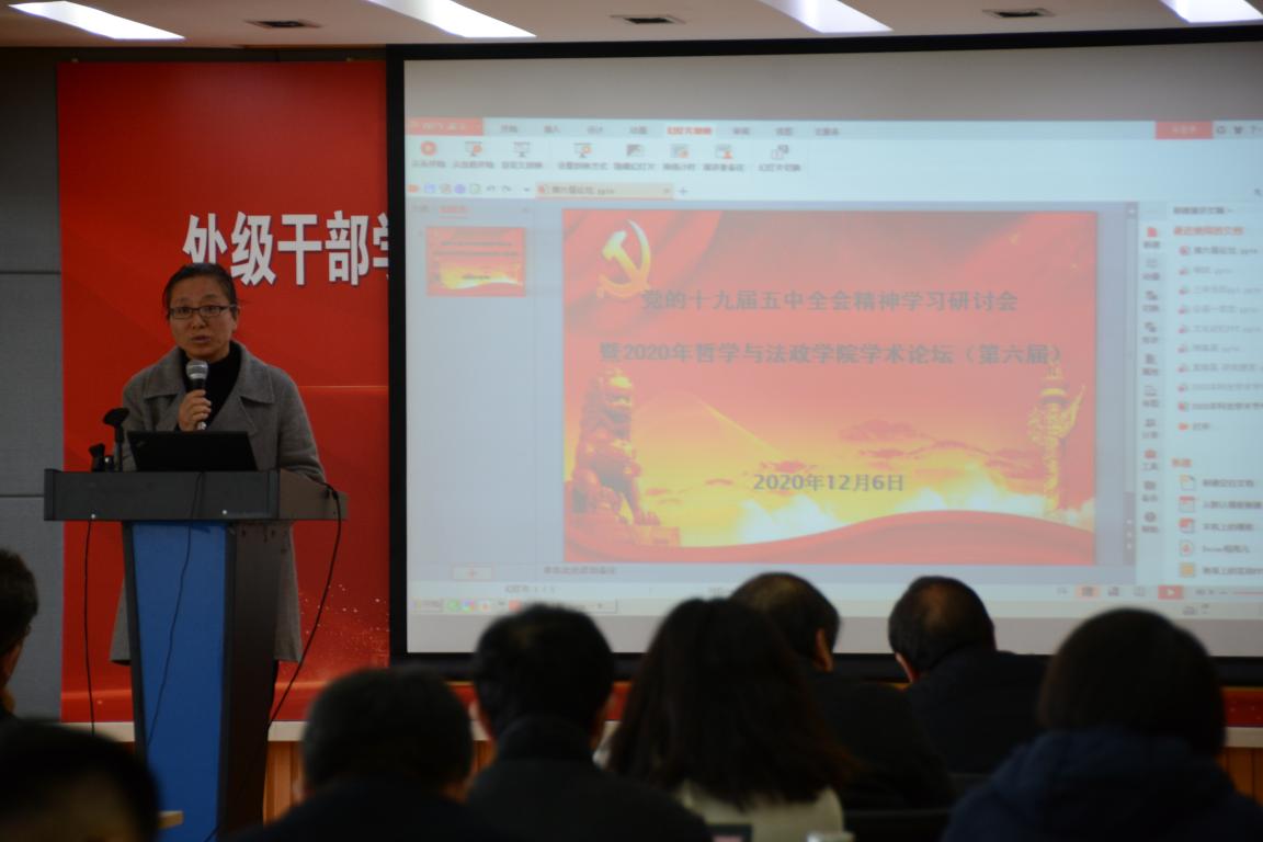2020年12月6日上午8:30,海角av 党的十九届五中全会精神学习研讨会暨第六届学术论坛如期举行。本次论坛由海角av 副院长樊志辉教授主持,来自海角av 的70余名教师就研讨会主题展开研讨。