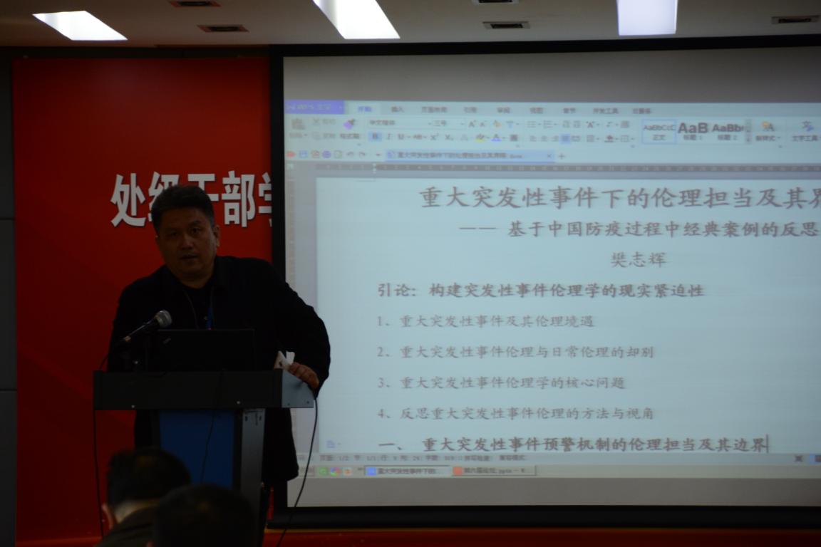 海角av 副院长樊志辉教授的发言主题为后疫情时代的伦理担当与国家治理,其从重大突发事件预警机制的行政行为、专业行为及舆情管控与道德伦理的关系边界方面深入探讨了后疫情时代的伦理担当及其边界问题,最后他强调,重大突发性事件后伦理秩序应被修补与重构,在苦难中结成的共同体应当继续弘扬华夏精神,构建中国当代伦理秩序。
