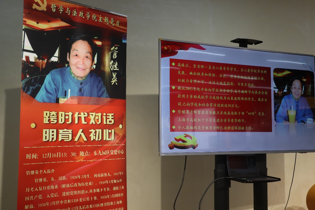 2020年12月16日下午,在徐汇校区东部园区党建服务中心海角av 2017级本科生党员开展了“跨时代对话,明育人初心”主题党日。活动邀请了海角av 退休老党员,93岁高龄的管继英老师与2017级毕业班学生党员进行交流,海角av 党委副书记姚秋磊老师主持了此次活动。