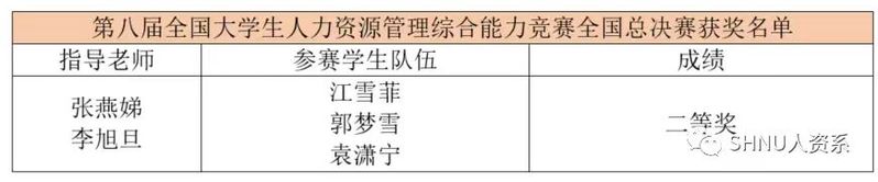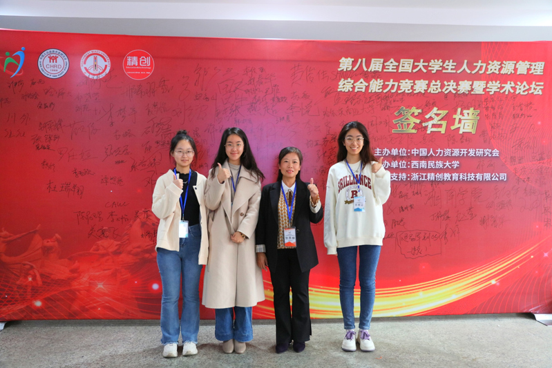 经过激烈的校赛选拔,8支报名参赛的队伍中共有4支队伍成功晋级区域赛,这4支队伍均是来自21级人力资源管理专业的同学。区域赛分HR大数据分析和HR实务分析两个赛段。在HR大数据分析比赛中,来自21级人资2班的江雪菲、郭梦雪和袁潇宁三位同学组成的队伍过关斩将,最终进入HR实务分析比赛。63日至4日,第八届全国大学生人力资源管理综合能力竞赛第五赛区区域赛线下赛在浙江理工大学举行。人力资源管理系张燕娣老师和刘晓春老师带队参加了此次比赛,并最终喜获佳绩。