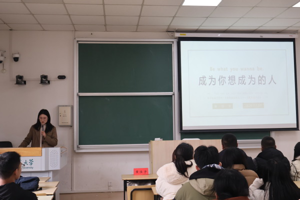 王为群同学的宣讲主题为“走在自己的时区里”,她着重提出大学生活需要做好阶段性规划,在初入校时认真学习,扩展自己的视野;随着逐步成熟,也要逐步增强自我独立性,给予人生“掌控感”;在大三时要提前设立好自己的毕业目标并努力实现,她鼓励大家不懈努力,勇敢地面对生活的挑战。