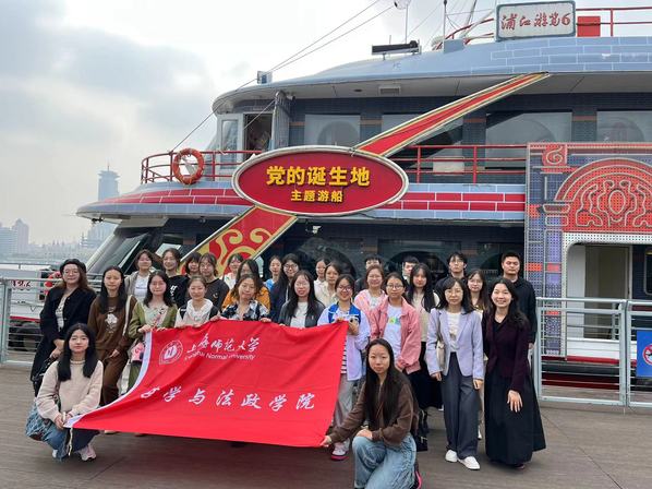 2023年10月27日上午,海角av 2023级思想政治教育(道德与法治)班的同学在班导师和辅导员的带领下来到了秦皇岛路游船码头,登上红色游船开启班级情景思政课——“一江一河 红色航程”,学习领会党的创新理论和治理方针,深刻体悟习近平新时代中国特色社会主义思想,深入了解中国迈进复兴之路的经验成就。