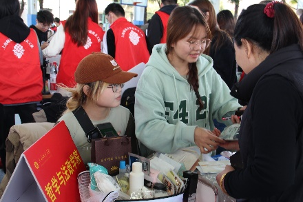 “哲法爱心摊位”前,志愿者们早早就忙碌起来,搭建摊位,整理物资,热情叫卖者。工作人员热心介绍着每一样爱心物品的用途和本次爱心义卖活动的意义所在。