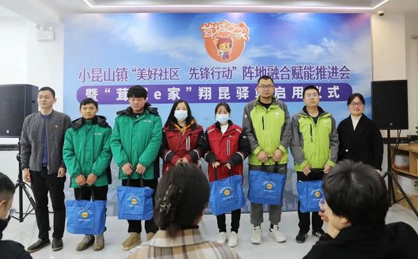 活动伊始,小昆山镇党委委员梅志芳就阵地融合赋能情况进行了简要介绍。松江区党建服务中心主任金晓燕和小昆山镇副镇长潘叶翠进行了“茸城e家”翔昆驿站揭牌仪式,宣告“茸城e家”翔昆驿站正式启用。