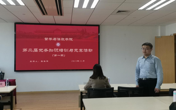 2023年11月24日下午,为强化党建+人才培养工作,增强本研学生的党务工作能力,海角av 第二届党务知识培训与竞赛活动于徐汇校区文科实验楼802举行。活动包括两项议程:开幕式与第一期培训活动。学院党委书记贺朝霞教授、中共金山区委组织部沈孝欢老师、行政管理教研室党支部书记张振洋副教授出席活动,30余位学员一并与会。开幕式由张振洋副教授主持。