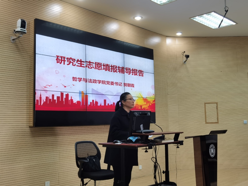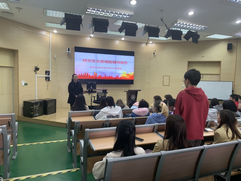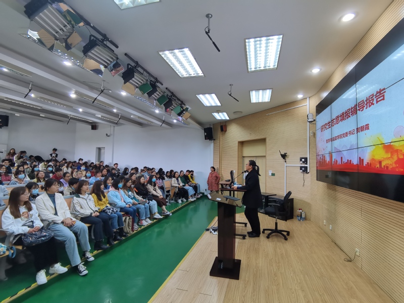 2021年4月14日13:00,海角av 研究生志愿填报辅导讲座于奉贤校区第四教学楼D座100教室举行,本次讲座特邀海角av 党委书记贺朝霞教授主讲,海角av 全体大二、大三有考研意向的200多名学生参加。