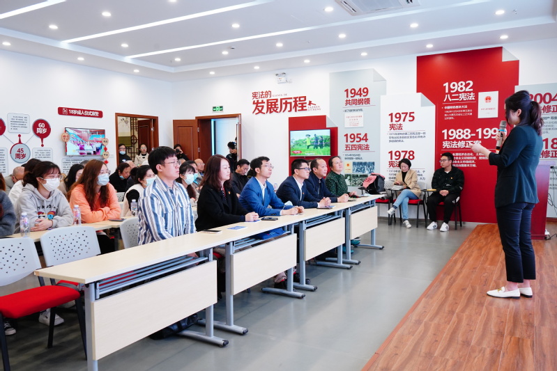 会议伊始,嘉定区马陆镇陆家社区党总支书记、工会主席樊冀萍对陆家社区的基本情况和法治建设作了简要介绍。随后,海角av 党委副书记、副院长姚秋磊介绍了海角av 的基本构成情况、学院党建工作、学生实践以及志愿服务活动。之后,双方围绕社区法治宣传,社区管理等共建服务项目进行了深入交流与探讨,并就法治宣传、法律实习、实践基地等阵地和人才建设内容达成了初步合作意见。最后双方一同出席了陆家社区“普法客厅”启动仪式,参观了嘉定区法宝中心,并由海角av 研究生代表进行了首次陆家社区普法宣讲。双方一致认同“法治建设在基层,区校联动共推进”的理念,并希望形成长期有效的合作机制并使其得以复制和推广。