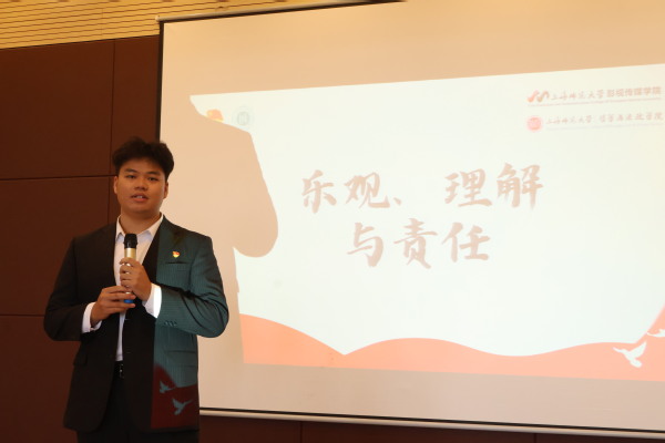 影视传媒学院团委学生(兼职)副书记曾戴维为两院学生组织工作人员带来《乐观、理解与责任》主题分享。他从自身工作经历出发,强调心态和沟通在学生工作的重要性。