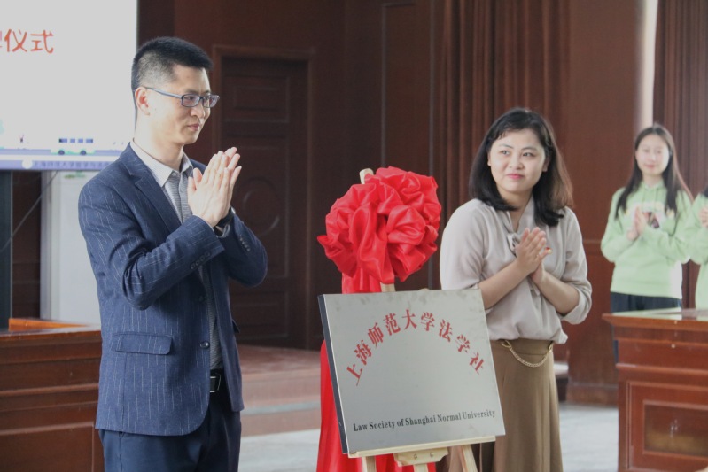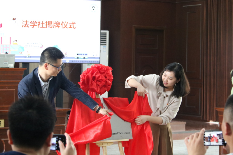 法学社围绕“普及法律知识,宣传法治精神”,为社会主义法治文明建设添砖加瓦。海角av 党委副书记姚秋磊与校团委副书记金黎琼为法学社揭牌,与在场的师生们一齐见证法学社成立的时刻。