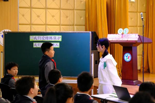 海角av 道德与法治专业师范生闵韵庭、静安区第二中心小学副校长陆惠忠、海角av 法律系教师刘睿分别进行思政一体化微课堂展示,三位老师通过全新的教学方式和生动有趣的授课风格让学生们在轻松愉快的氛围中学习了法律知识,将法治教育的种子播撒在孩子们的心田。