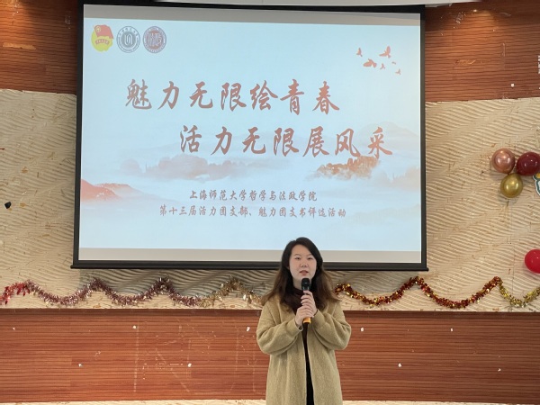 活动伊始,祝楠老师对活动进行了致辞。她分享了前几届魅力团支书、活力团支部的活动成就,希望各团支部能够加强彼此之间的凝聚力,继续推进基层团支部建设,切实把优秀的哲法风貌落到实处,并预祝此次本次评选活动取得圆满成功。