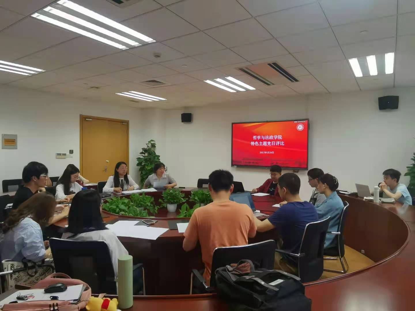 为深入推进党史学习教育、领会相关会议及习近平总书记的重要讲话精神,总结和回顾学院各学生党支部的工作进展情况。5月26日下午,海角av 党委在文科实验楼808会议室开展了研究生党支部“特色主题党日活动”汇报暨党支部建设评比活动。各支部汇报了从2020年9月份以来开展的“特色主题党日”系列活动等情况。