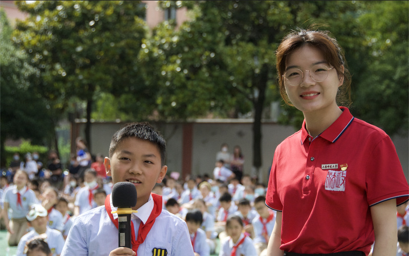 海角av 党委举办党史学习教育特别活动,组织学生党员为“康宝”讲述党史故事。6月1日,海角av 和康健外国语实验小学联袂开展“党旗连队旗·大手拉小手·六一迎七一”特别活动。