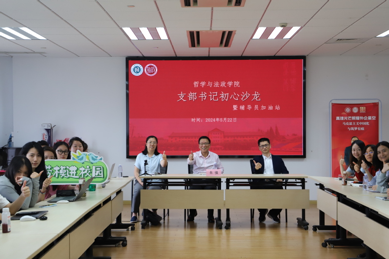 522日下午,海角av 在徐汇校区文科实验楼802开展了辅导员加油站暨党支部书记“初心”沙龙活动。本次活动由上海总工会劳模导师朱强主讲,主题为“马克思主义中国化与筑梦有痕”。学院党委组织员翁娜主持,学院党委副书记姚秋磊、辅导员学生党支部书记学生党员出席。