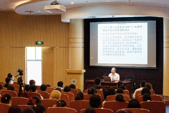 蒋传光教授从习近平法治思想核心内容、发展历程、历史地位、重大创新等方面进行了讲授。他强调习近平法治思想是“马克思主义法治理论中国化第三次飞跃的理论成果”,深刻全面地回答了一系列带有方向性,根本性,全局性的重大问题,进一步创新和发展了中国特色社会主义法治理论。习近平法治思想是体现人民利益、反映人民愿望、维护人民权益、充分体现人民意志的思想,是对中国共产党领导法治建设丰富实践和宝贵经验的科学总结,是党和人民实践经验和集体智慧的结晶。课后,蒋传光教授还与同学们进行了互动交流,同学们纷纷表示,今后将担负起时代使命,更好地为中国法治建设添砖加瓦。