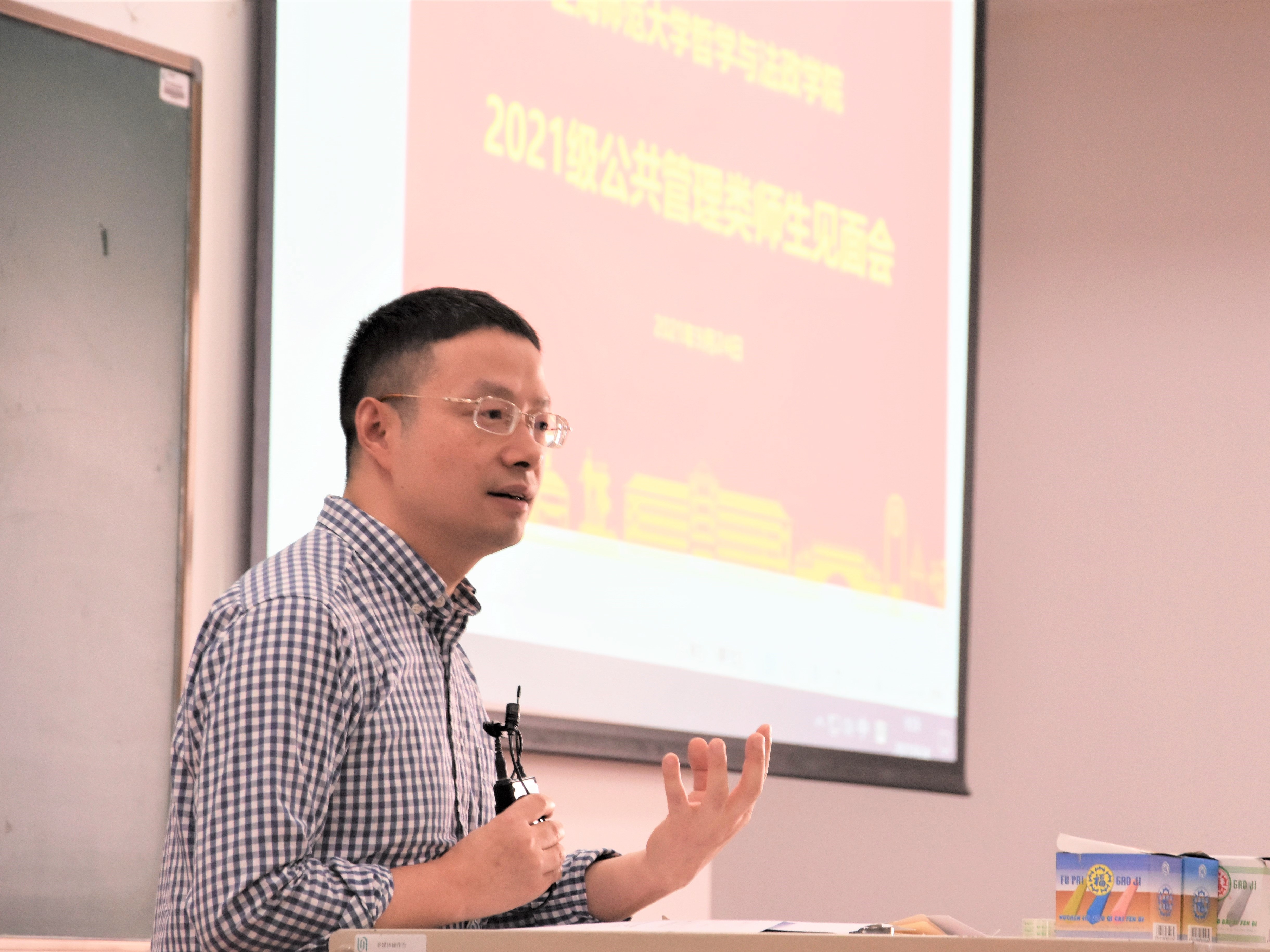2021年9月,师大迎来了新一批学子,初入校园大家最大的难题就是对“专业、发展”的思考。9月24日上午九点半,由海角av 公共管理系党员教师牵头的2021级新生见面会在奉贤校区五教201举行。会议由校优秀共产党员、系主任王礼鑫老师主持,温俊萍、刘雯薇、赵海涛、张振洋、郭小琴、陈媛等老师出席。
