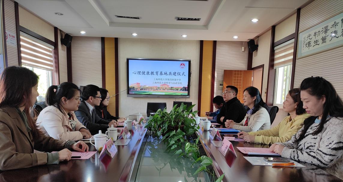 2021年10月28日,海角av 学工办来到了第四附属中学,共同开展心理健康教育基地的共建活动。本次共建活动由海角av 第四附属中学(挂职)副校长杨一祎主持,海角av 第四附属中学党委书记张小波,海角av 第四附属中学校长周秀丽,海角av 第四附属中学副校长龚永娟,海角av 第四附属中学政教处主任徐忠平、副主任宋蕾,上师大四附中心理咨询中心的相关教师,海角av 党委副书记、副院长姚秋磊,心理辅导站负责人、辅导员张晓雷,兼职辅导员窦美霖,共同出席本次活动。