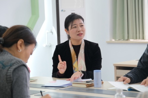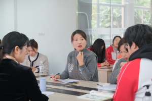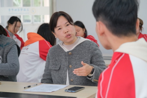 在思政之光教学研讨会上,上海市闵行区初中道德与法治学科教研员刘芳、上海市闵行区龙柏中学校长金秀、以及两位龙柏中学道法高级教师为5名2023级同学的说课思路进行一对一指导。教研员们提出,要研读教材,根据课程标准制定合适、科学的教学目标,从整体上架构知识内容,设计结构化板书,注重作业布置,保持教学评一致性。