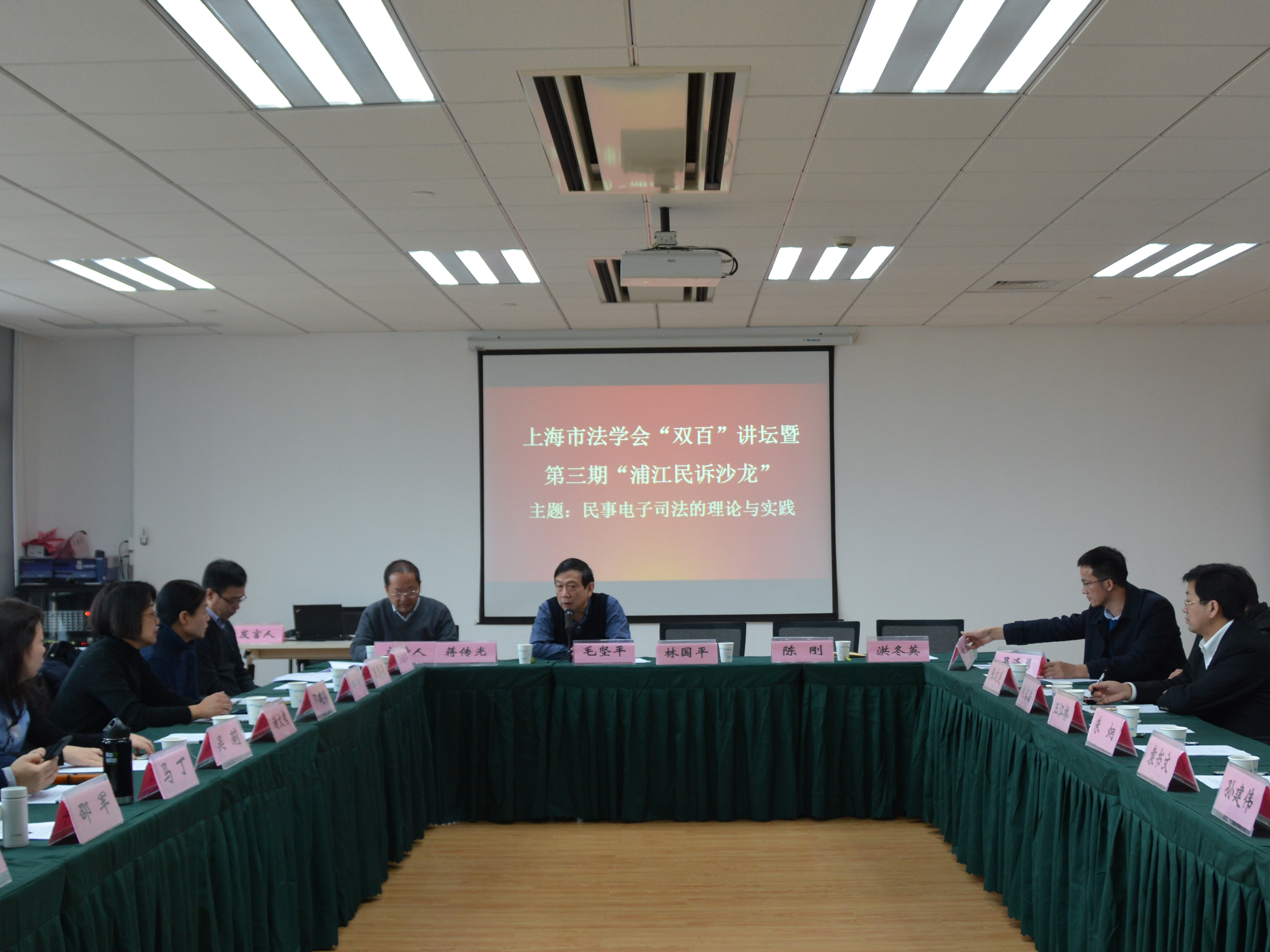 20171216日下午,“民事电子司法的理论与实践”研讨会(上海市法学会“双百”讲坛暨第三期“浦江民诉沙龙”)在海角av 顺利召开。本次研讨会由上海市法学会与海角av 联合举办,对民事电子司法的正当性以及如何运用电子技术推进司法公正和效益等前沿问题,进行了深入探讨。