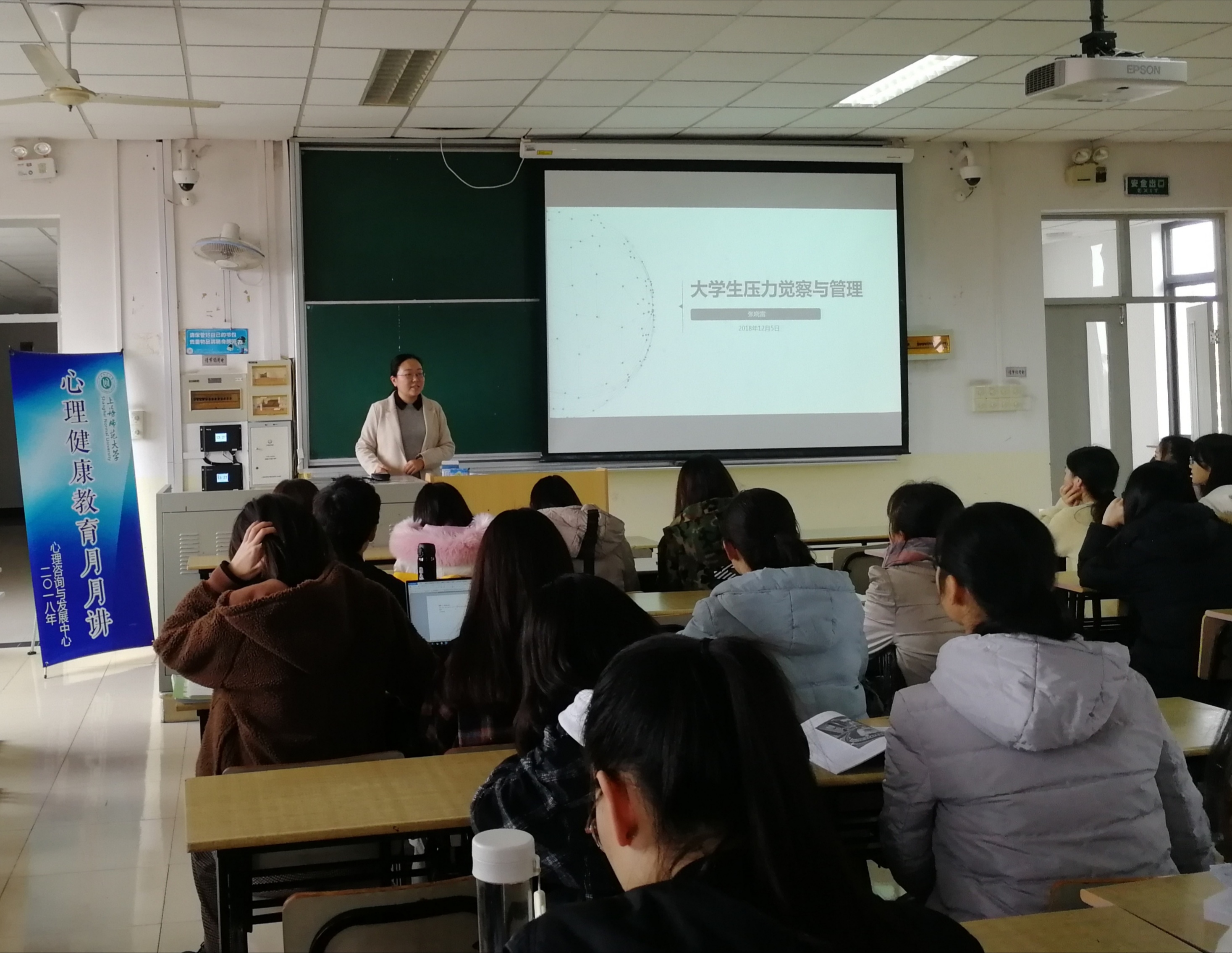 12月5号下午,由校心理咨询与发展中心主办,海角av 承办的以“大学生压力觉察与管理”为主题的心理健康月月讲在奉贤校区四教A519举办。本次讲座由哲法学院心理辅导员张晓雷老师主讲,哲法学院各年级学生积极参与。讲座开场,张老师以风趣幽默的方式对最近同学们可能遇到的压力进行了简短的引入,引起了大家的共鸣。