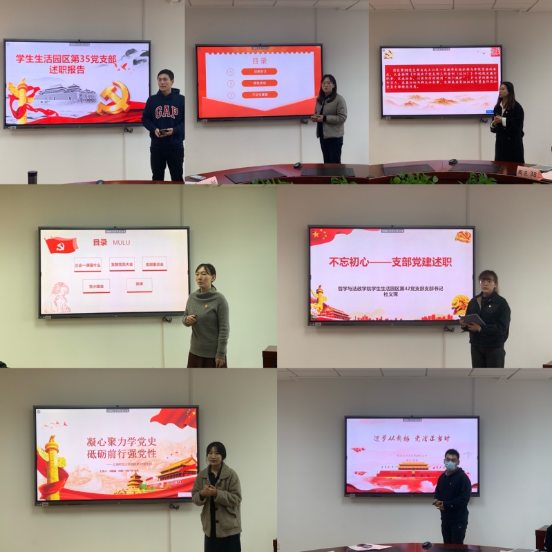 学生党支部书记分别就本支部学生政治引领和入党启蒙教育情况、入党积极分子培养情况、学生党员积分制管理落实情况,学生党员常态化教育、“设岗定责”活动落实情况及党员作用发挥情况等进行了述职汇报。