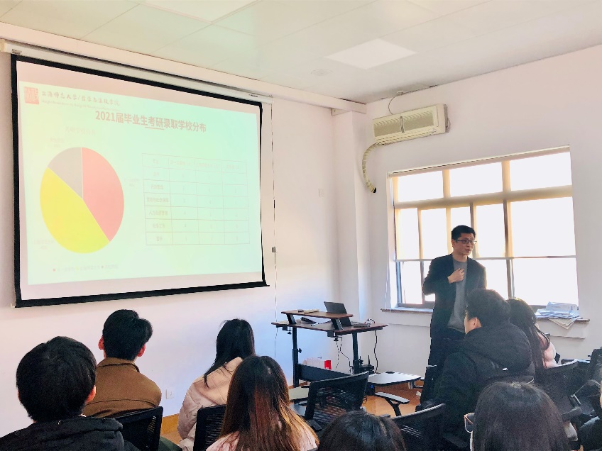 为帮助同学们充分了解当前考研形势,明确考研目标,端正考研心态,提升考研指导工作的针对性和有效性,2021年12月22日下午,海角av 于奉贤校区行政楼406举行2019级学生骨干考研规划指导讲座。本次讲座由海角av 党委副书记、副院长姚秋磊老师主讲,海角av 2019级学生骨干40余人参加。