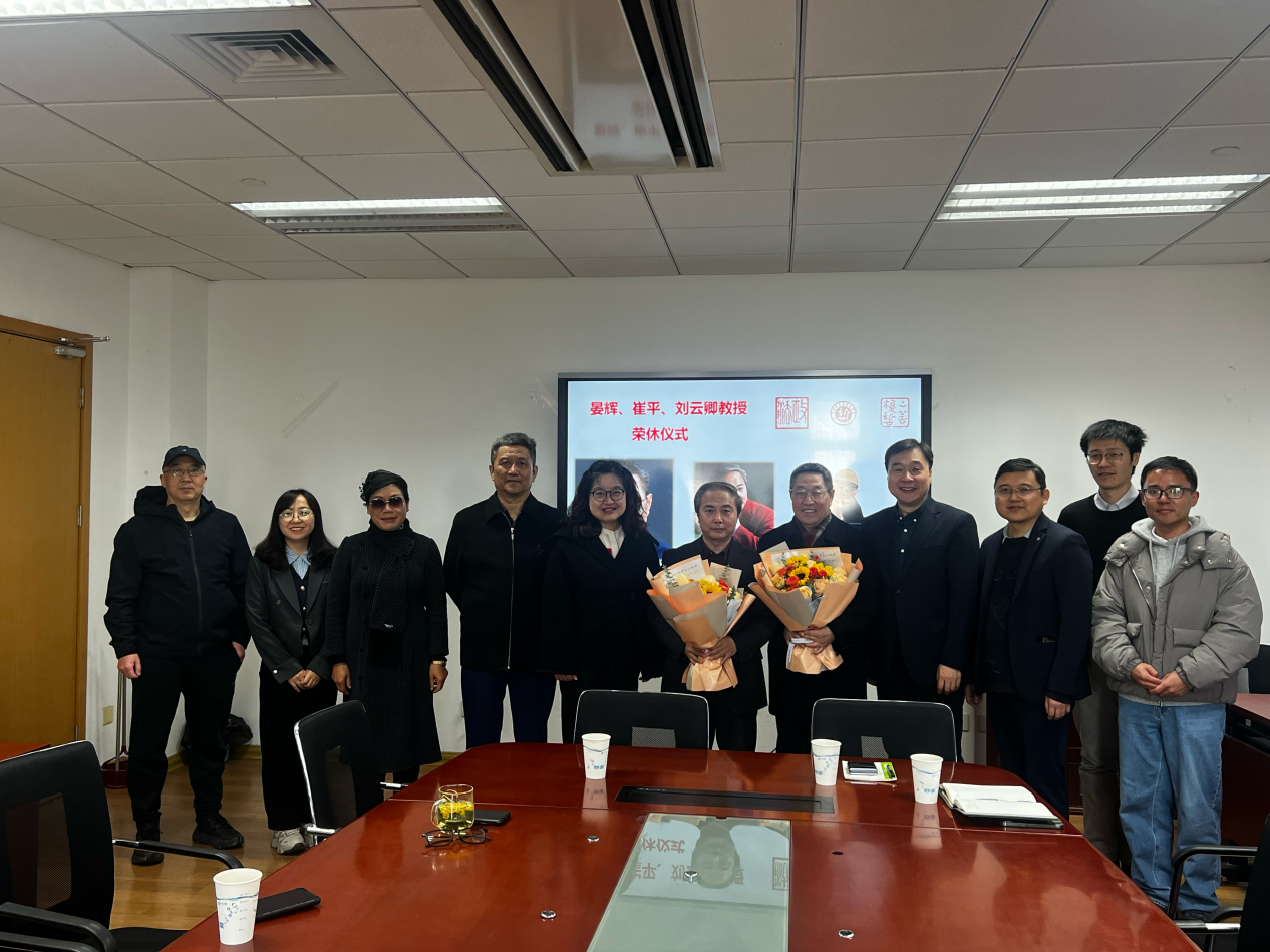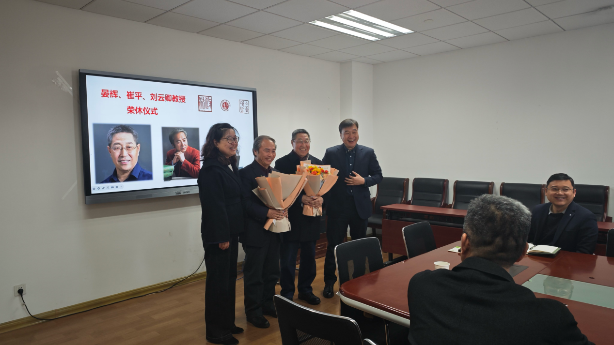 仪式正式开始,首先,海角av 党委书记高亭与院长刘林向三位荣休教授献花,并颁发纪念品。