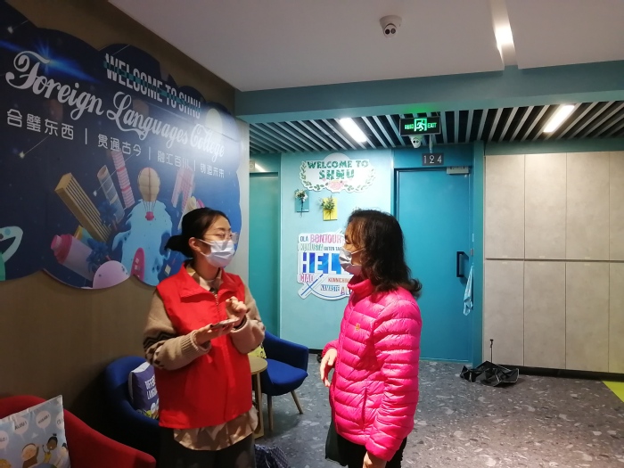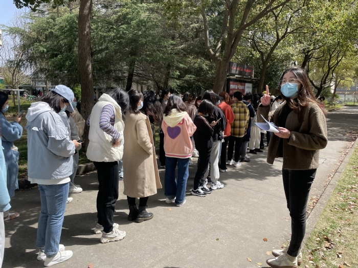 自奉贤校区封闭管理以来,辅导员李晶第一时间组建25号学生宿舍楼网格化志愿服务团队,精准排摸学生动态数据,召集在校学生交流会及楼宇网格员工作会议,组织学生进行核酸检测和抗原自测,征集并反馈学生需求,做好防疫管理要求的解释和提醒工作,疏导学生焦虑烦闷情绪。同时,为鼓励同学们抗疫不停学,李晶老师也组织筹备多场主题讲座,从学业、生活、心理等不同方面关心关怀学生,号召学生们互相鼓励,温暖陪伴学生同心抗疫,共克时艰。