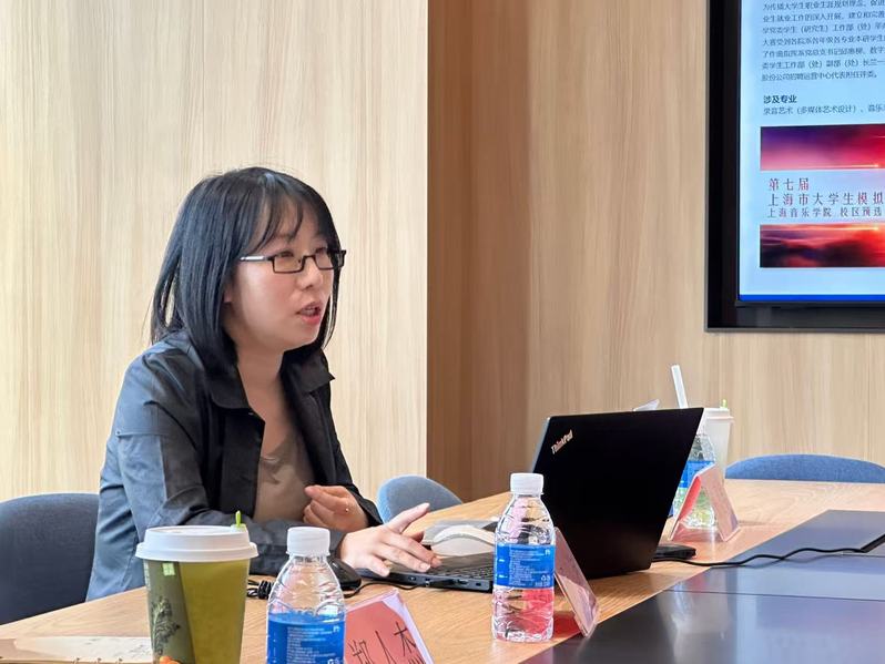 活动尾声,中智上海人力资源部经理毛彦卿、员工王帆与学工团队洽谈后续招聘事宜。双方探讨了在人才培养、职业规划等方面的深度合作的可能性,致力于为学生创造更好的就业条件。