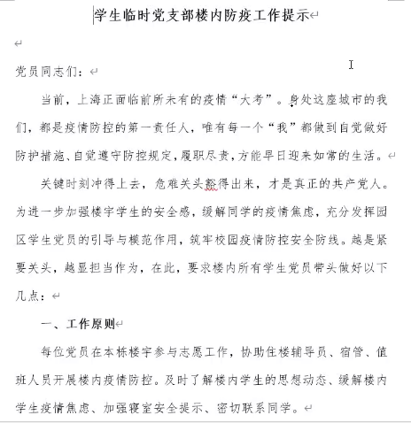 “疫情不缓解,我们就不停歇!”这是临时党支部成员喊出的响亮口号!为全面贯彻落实上海市关于疫情防控工作的部署要求,充分发挥基层党支部战斗堡垒作用和党员先锋模范作用,海角av 迅速响应,坚持疫情防控任务延伸到哪里,党的组织和党的工作就覆盖到哪里,成立西一、东三、东七学生宿舍楼宇临时党支部, 在抗击疫情关键时刻,党员们主动明身份、勇担当,用实际行动诠释了当代青年的能量与勇气。
