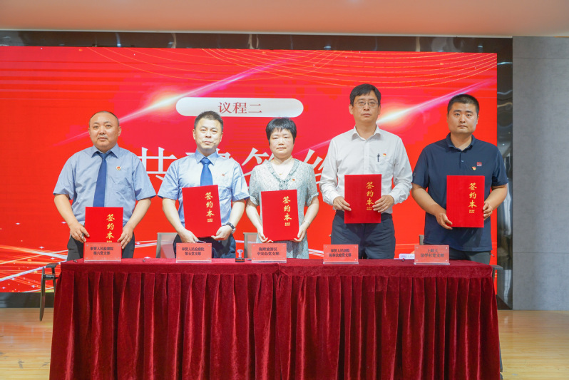 活动现场,海湾旅游区平安建设办公室党支部与奉贤区人民法院柘林法庭党支部、奉贤区人民检察院第五党支部及第六党支部、海角av 法学社党支部签署结对共建协议。此次共建是贯彻落实习近平法治思想、推动高校资源与基层治理需求深度融合的重要实践,更是提升青年学生法治实践能力的关键平台。