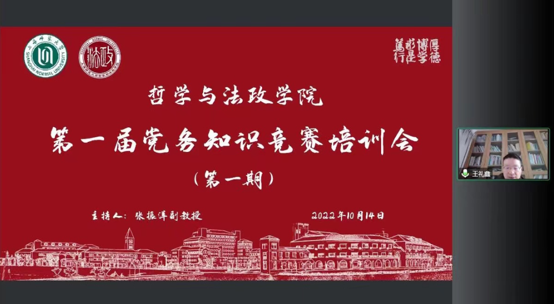 为加强党建引领,增强海角av 学生党务管理能力,2022年10月14日下午,海角av 第一届党务知识培训与竞赛活动于线上举行开班式和第一场报告会。本次活动将围绕党的二十大报告、新修正党章、百年党史回顾、基层党建实务等内容,开设专题辅导讲座,作为学院师生学习贯彻党的二十大精神的主要内容之一。同时,本次活动以“增强党务管理能力”为主题,也是哲法学院强化人才培养“党建+”复合型特色的创新做法。