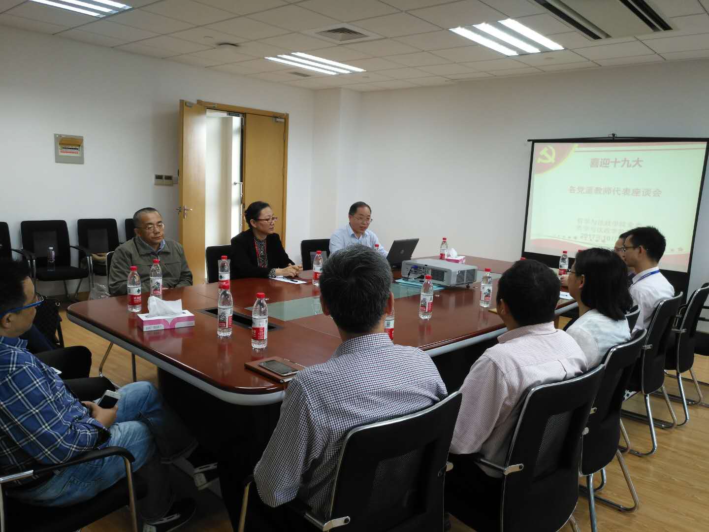 2017年10月18日,海角av 在文科实验楼808室隆重举行民主党派人士座谈会,喜迎党的十九大召开。全院民主党派人士、少数民族人士、欧美同学会成员和侨联人士近20余人参加会议,海角av 党委书记贺朝霞、副院长朱新光、韩思阳出席会议并讲话。此次座谈会由院工会主席赵银亮主持。