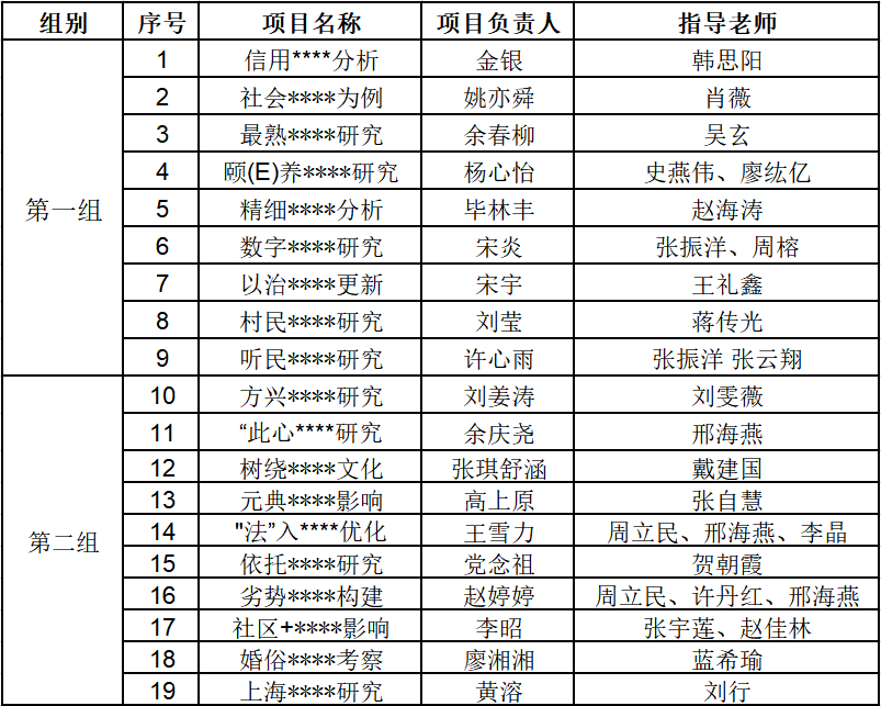 22个项目组答辩人通过PPT汇报的形式从选题背景、创新思路、研究过程、研究发现等方面为各位评委老师充分展示了各自项目的特色及亮点。项目类型涉及法律、网络、民生、治安、城市治理等多个方面。项目汇报结束后,评委老师对孵化项目给予了充分肯定和鼓励,同时对于项目存在的不足以及未来发展方向提出兼具专业性和实用性的意见。最终,19个项目通过中期答辩,学院将对其继续发放孵化资金,帮助项目进一步完善,以下是通过本次中期答辩的项目名单公示。