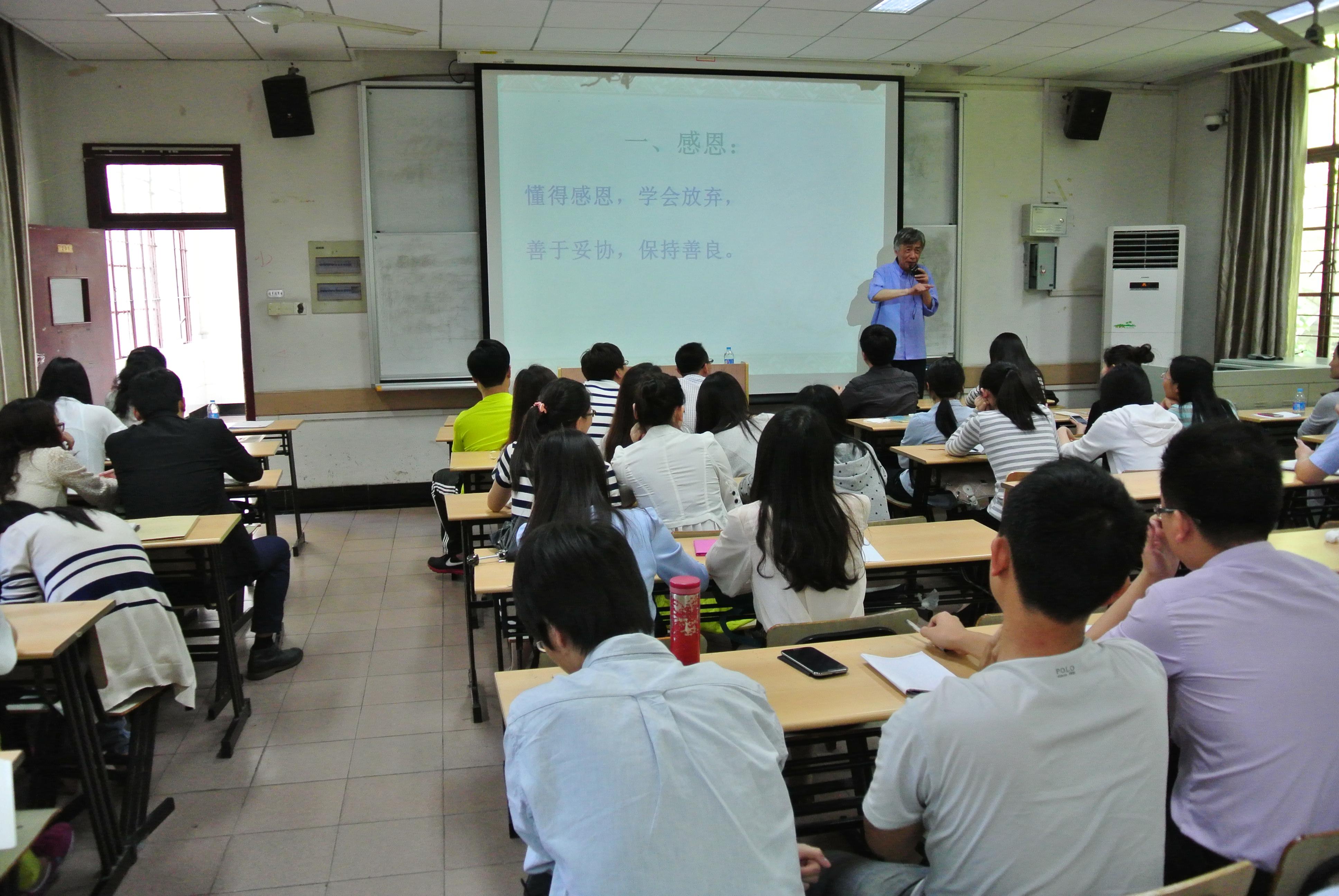 在三教201教室举行毕业生党员教育大会。院党委副书记陈燕、党委组织员陈敏、研究生辅导员王秀萍、本科生辅导员樊青青和全体研究生、本科生毕业生党员参加了大会。原法政学院院长助理、法政学院“关工分会一号老同志、法政学院关工分会副主任、法政学院特邀组织员朱国定副教授应邀作了“感恩·责任·奉献”的主题演讲,院党委组织员陈敏老师为全体毕业生党员作了“关于2014年毕业生党员组织关系转接须知”的培训。大会由陈燕老师主持。