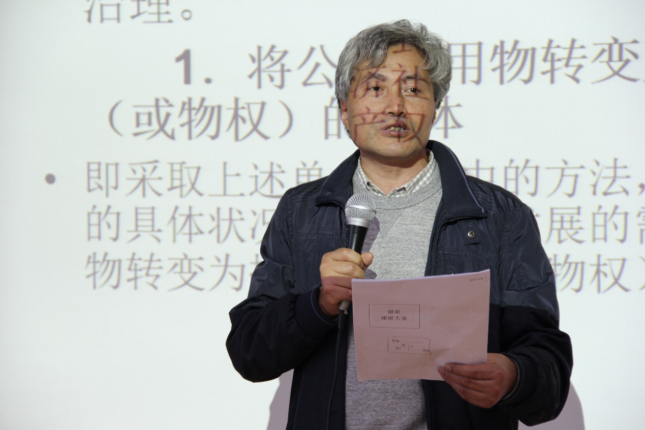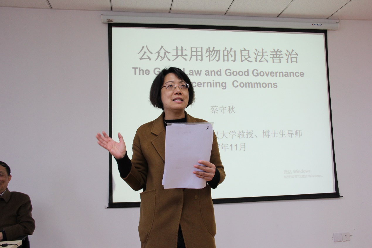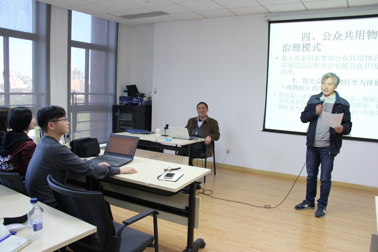 讲座伊始,蔡守秋教授从公众共用物的基本概念切入,深入浅出地辨析了与公众共用物难以区分的几个相关概念。其次,蔡教授通过与德国、意大利等国相关制度的比较,通过对我国传统法制的历史分析,指出公众共用物的良法善治对促进和保障公众共用物的生产、供给和服务的意义。最后,蔡教授在解析相关理论学说的基础上,提出公众共用物的新型治理模式为综合运用政府监管、市场调节和社会参与这三种调整机制。