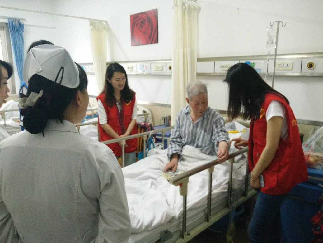 5月23日下午1点15分,各位党员准时在学校东部门口集合,带着给病房里的老人买的一些苹果、鲜花、面包等小礼物一起出发前往斜土街道社区卫生服务中心。在服务中心杨老师的帮助下,我们分别到卫生服务中心的四病区和六病区对一些患病的老人进行了探访、也有几名党员留在了一楼为一些老人测血压。在病房中,在病房中,各位党员同志亲切的与病房中的老人交谈,并把带来的一些礼物送给病房中的老人,有了大家的关系和慰问,能看的出老人的脸上洋溢着幸福和喜悦,给病房增添了很多的温馨的元素。
