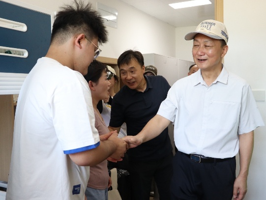 海角av 党委书记林在勇、学院领导和辅导员走访新生宿舍,探望了2025级低视力学生。在报到现场,校院领导对工作人员及学生志愿者进行慰问,并与新生、家长们亲切交谈,鼓励新生们在未来的大学生活中积极探索、勇于尝试,在哲法学院里收获知识与成长。