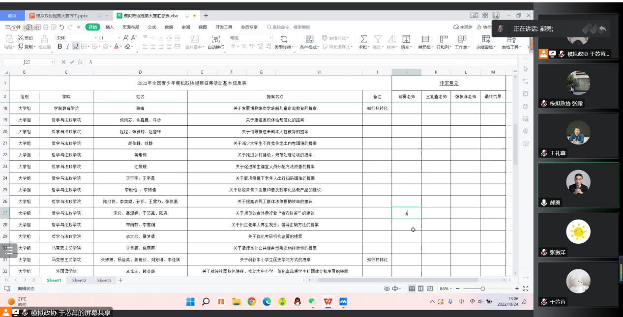 为更好引导广大青年在实践中感悟全过程人民民主,进而感受中国特色社会主义制度优势,增强制度自信,培养社会责任感和实践创新能力。2022年9月6日-10月24日,海角av 学生会与学生模拟政协协会共同举办了2022年海角av 第一届模拟政协提案大赛。