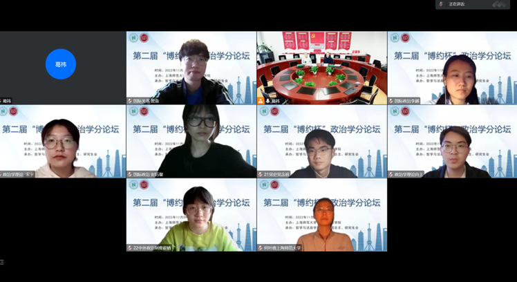 受疫情原因的影响,11月9日下午,分论坛评析环节采用了线上、线下相结合的方式,根据学院学科分类,论坛划分为法学、社会学、公共管理、哲学、政治学五个分会场。与会教师包括政治学朱新光、陈兆旺,社会学梁德阔、许丹红;法学刘振宇、艾围利;公共管理张振洋、姜晓晖;哲学杨杰、郝春鹏。参会学生从各自研究背景、研究方法等角度对论文进行了全面的说明,各专业学科带头人及导师对投稿论文中的相关议题进行了专业的评析并给出指导意见,并就热点话题和学生展开学术探讨。会议现场学术气氛热烈,学生们也表示,此次交流深受启发,有助于拓展自身学术视野,在学院中创造了新时代良好的科研环境。最后,各分会场的专业教师和学生合影留念。