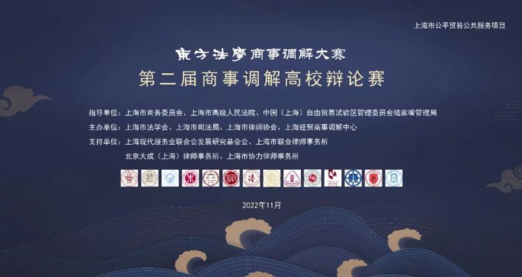 作为“上海法治文化宣传月”的重要活动和“东方法学商事调解大赛”赛事之一,第二届商事调解高校辩论赛于11月6日开赛,分为初赛、复赛、半决赛与决赛四个阶段,云集了复旦大学、上海交通大学、同济大学、华东师范大学、华东政法大学、上海财经大学、上海政法学院、上海海事大学、上海对外经贸大学、上海大学、华东理工大学、海角av 、上海外国语大学、东华大学等14所沪上知名高校的20支队伍参赛。比赛全程通过哔哩哔哩等平台直播。