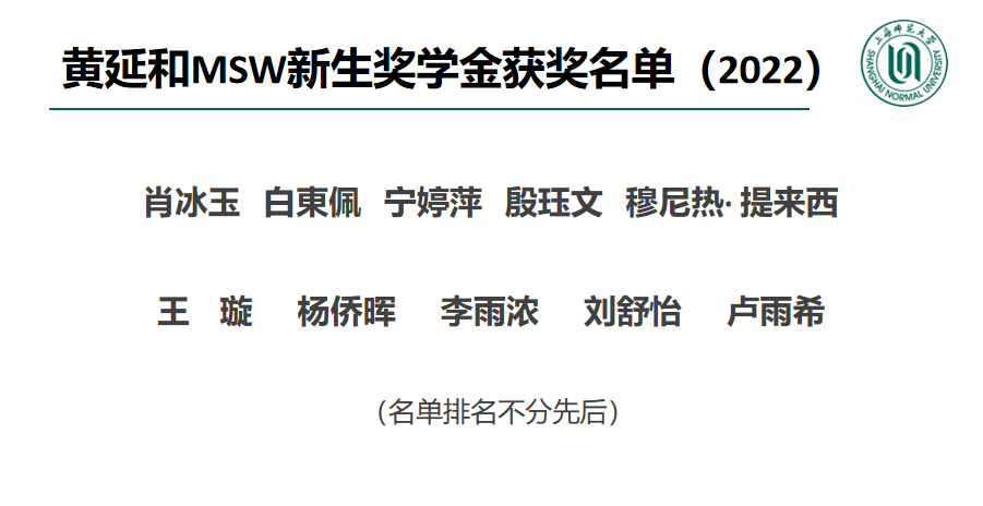 接着,社会工作硕士教育中心负责人赵佳林副教授宣读2022年黄延和MSW新生奖学金获奖名单,并鼓励同学们再接再厉,学有所成。