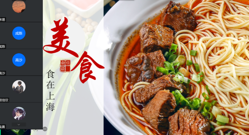 饮食文化课程由俞佳晨主讲,围绕上海本帮菜展开,就本帮菜中较为经典的菜肴做了具体介绍,讲解其特征与典故。随后,俞佳晨教员和其他几名教员与同学们分享了贵州当地的美食。通过学习本次课程,同学们对各地的风俗和饮食习惯都有了更深入的了解。